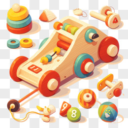 一组彩色线描涂鸦风玩具套图之积木免抠元素