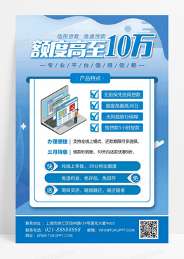 蓝色小额无抵押贷款快速出款尽享便利贷款海报