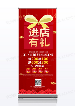 喜庆红色简约进店有礼促销到店有礼展架易拉宝