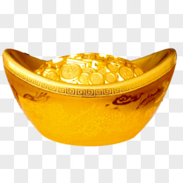 卡通一个古装美女站在金元宝里有钱花免抠元素