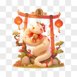 3D插画卡通拟人蛇2025新年福蛇免抠元素