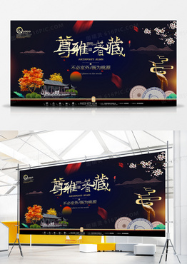 大气华丽暗金中式不必室外即为桃源地产展板设计