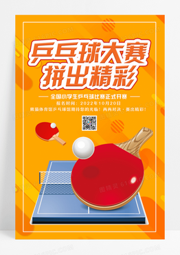 橙色乒乓球大赛拼出精彩比赛宣传海报