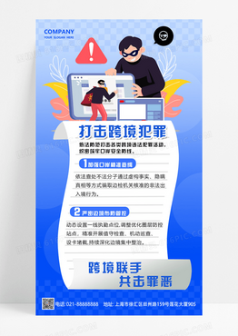 蓝色渐变盾牌打击跨境犯罪政策宣传手机海报