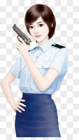 卡通手绘小女孩向警察叔叔问路免抠元素
