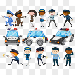 手绘卡通人民警察帮助老奶奶场景免抠元素