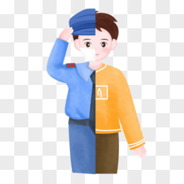 卡通手绘戴口罩敬礼的公职人员素材