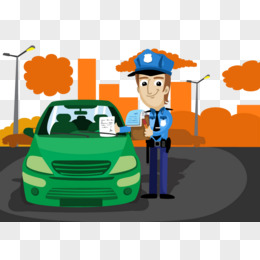 手绘卡通警察开罚单场景元素