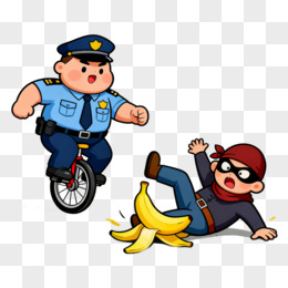 卡通手绘风警察抓劫匪免抠元素