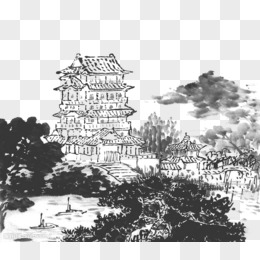 手绘金边国潮建筑景德镇祈福殿免抠元素