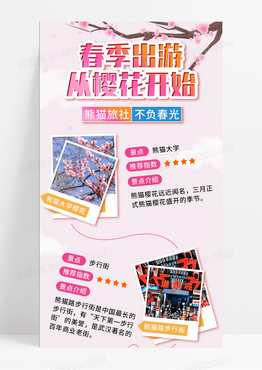 粉色春季出游从樱花开始插画风长图