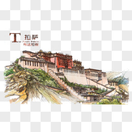 手绘金边国潮建筑景德镇祈福殿免抠元素