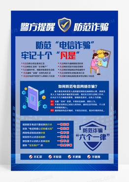 蓝色简约警方提醒防范诈骗全国防诈骗宣传日海报设计