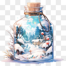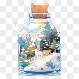 手绘玻璃瓶微缩景观免抠元素