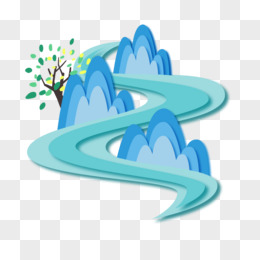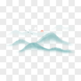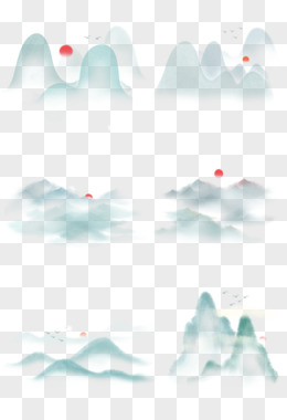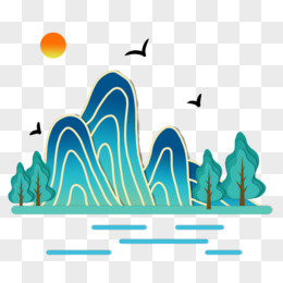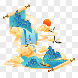 手绘国潮金线青山绿水凉亭大雁景观元素