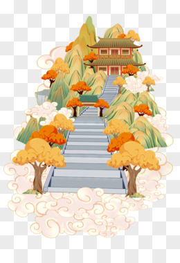 手绘国潮梯田麦穗农田梯田山川微景观免抠元素