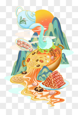 手绘国潮风正宗柳州螺蛳粉微景观素材