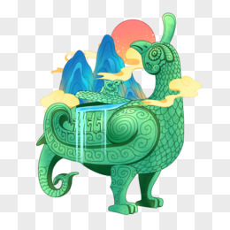 手绘新中式国潮西周晋侯鸟尊山水微景观元素