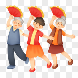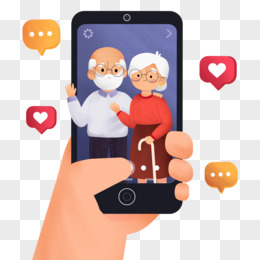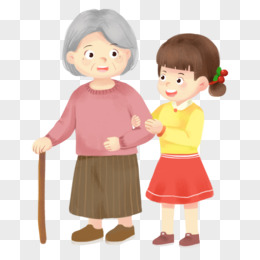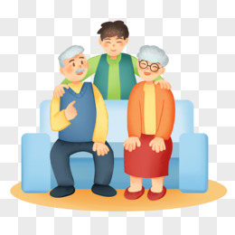 手绘卡通儿子陪伴孝顺老人免抠素材