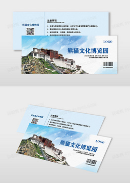蓝色简约景区门票西藏景区旅游入场券