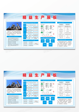 蓝色线条渐变背景公司精益生产知识宣传展板精益生产宣传栏设计
