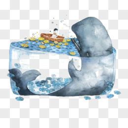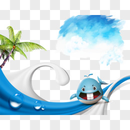 卡通图案 海浪 沙滩 鲸鱼 喷水