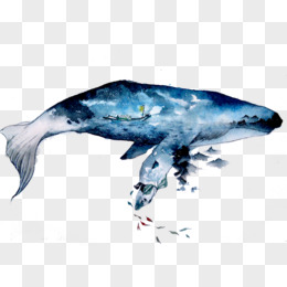 手绘拯救海洋垃圾鲸鱼与海洋插画素材