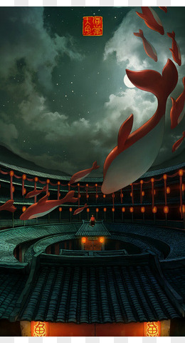 可爱卡通女孩坐在巨大的鲸鱼上免抠元素