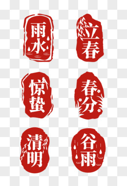 矢量节气雨水立春惊蛰春分清明谷雨印章盖章免抠元素一
