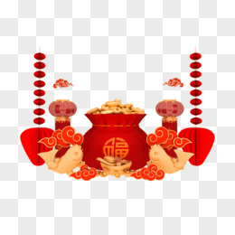 红金色中国风新年元宝附带锦鲤灯笼装饰