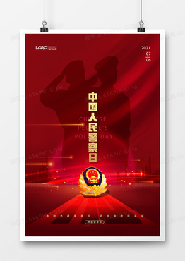 红金大气中国人民警察日创意海报