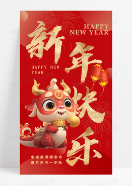 红金龙年春节龙新年手机宣传海报
