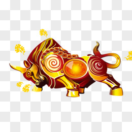 金色浮雕剪纸风牛气冲天新年福牛免抠元素