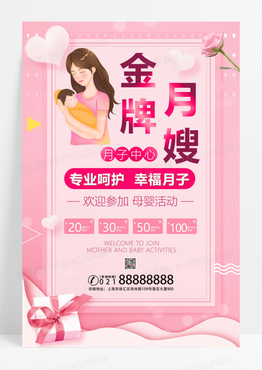 粉色浪漫温馨卡通母婴金牌月嫂月子中心月嫂海报