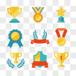 卡通手绘金银铜奖杯颁奖奖励等级元素