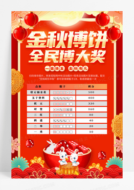 红色国潮边框风格金秋博饼中秋博饼宣传海报