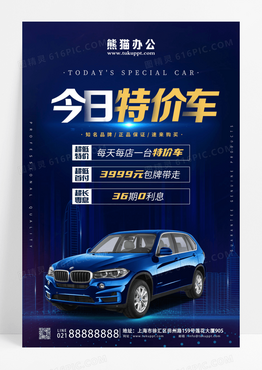 星空蓝色今日特价车特效科技特价车海报设计