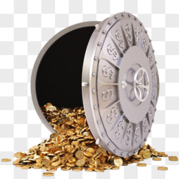 3D卡通金色圆形保险柜和金币存钱罐免抠元素