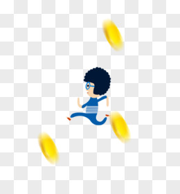 卡通男人站在一摞摞金币后高举双手庆祝赚钱免抠元素