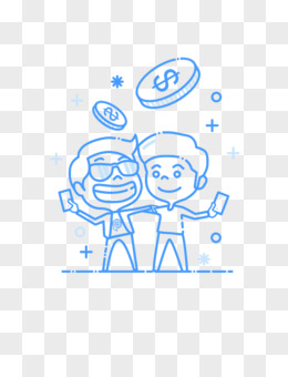 卡通一个穿着二蓝裙子的女孩拿着一叠钱买买买免抠元素