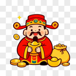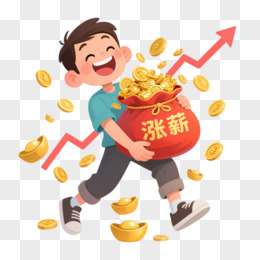 卡通一个男人抱着印着涨薪的福袋免抠元素