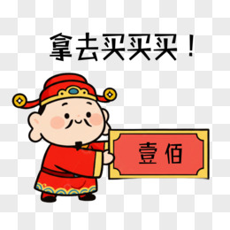 卡通一个穿着二蓝裙子的女孩拿着一叠钱买买买免抠元素
