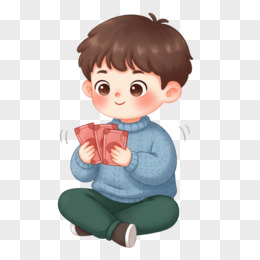 卡通手绘戴墨镜小男孩手拿金元宝免抠元素