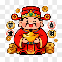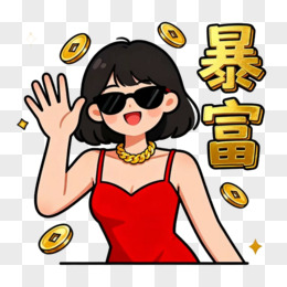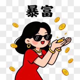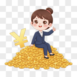 卡通一个古装美女站在金元宝里有钱花免抠元素