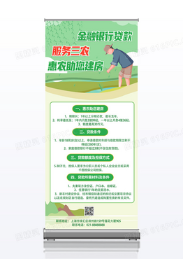 绿色简约卡通时尚金融银行贷款服务三农惠农建房贷款易拉宝展架