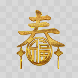 手绘金色立体春福免抠艺术字