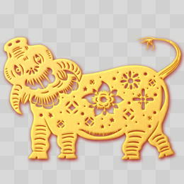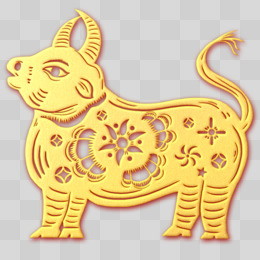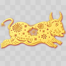 新年中国风金色浮雕剪纸风昂首的牛装饰元素
