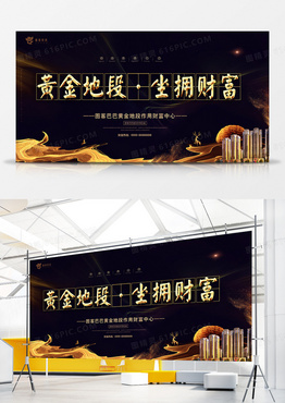 金色大气黄金地段坐拥财富地产宣传展板模板