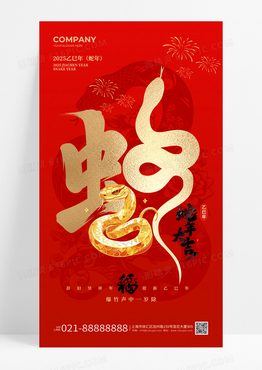 红色喜庆剪纸2025蛇年新年氛围手机海报
