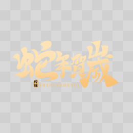 金色渐变手写繁体蛇年贺岁艺术字设计